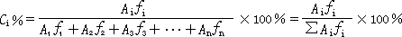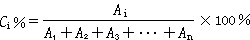 由于組分的量與其峰面積成正比,如果樣品中所有組分都能產生信號,得到相應的色譜峰,那么可以用如下歸一化公式計算各組分的含量。