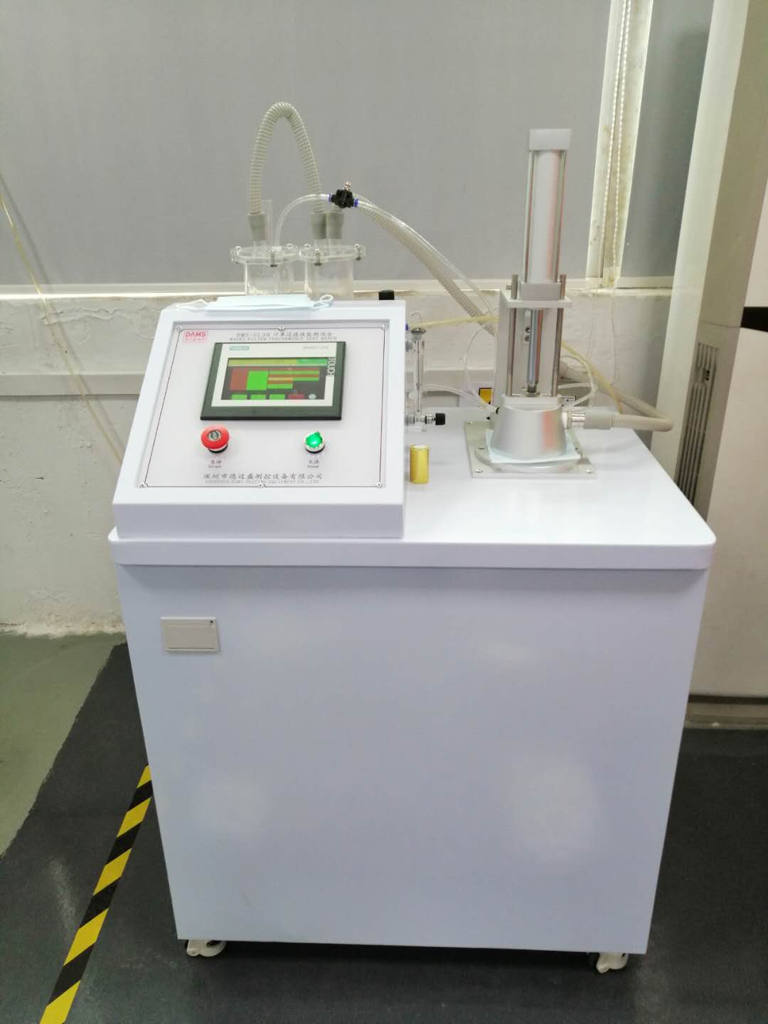 檢測(cè)原理:一定濃度及粒徑分布的氣溶膠,以規(guī)定的氣體流量通過(guò)口罩罩體,氣溶膠通過(guò)口罩罩體后,顆粒物濃度減少量的百分比來(lái)評(píng)價(jià)過(guò)濾效率。