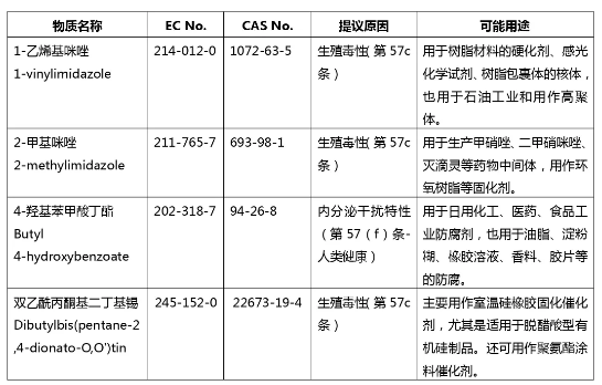 2020年6月16日,歐盟化學品管理局(ECHA)將新一批共4項物質加入SVHC候選清單。由于成員國委員會沒有一致支持法國關于將間苯二酚(EC 203-585-2; CAS 108-46-3)確定為SVHC的提議,所以間苯二酚暫未被列入SVHC中,但后續歐盟委員會仍會就此物質展開進一步的確認,從而做出最終決定。至此SVHC已增加至209項物質。新增4項SVHC候選物質信息如下表: