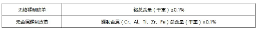 若申請者希望在證書中出現“無鉻鞣制皮革”和/或“無金屬鞣制皮革”等術語,則必須滿足以下要求: