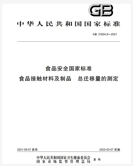 GB?31604.8-2021《食品安全國家標準?食品接觸材料及制品總遷移量的測定》將于2022年3月7日起正式實施,全部代替 GB?31604.8-2016。
